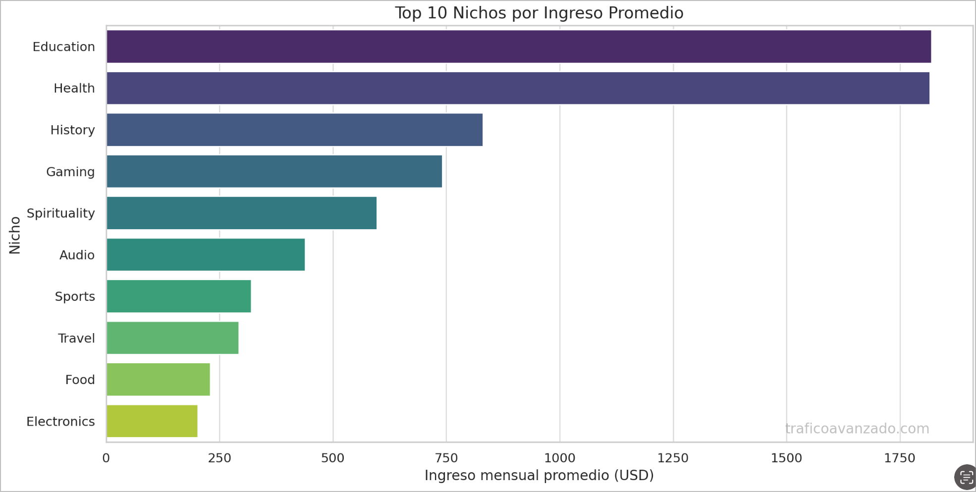 De acuerdo a esto, los canales de educación y salud generan en promedio más ingresos que los demás, con un promedio de $1,800 dólares mensuales.